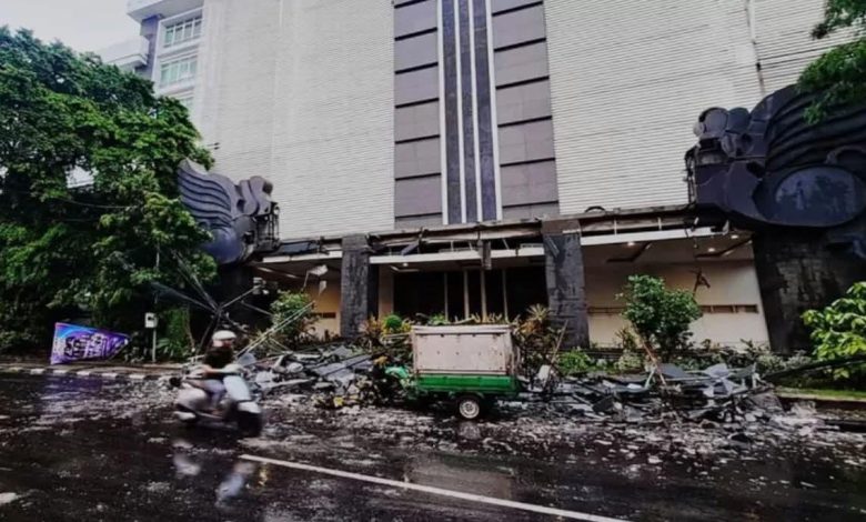 Seluruh struktur bangunan gapura hancur dan roboh menimpa sebuah kendaraan roda tiga milik pedagang yang tengah terparkir di lokasi. Akibatnya Kejadian itu kendaran mengalami kerusakan parah